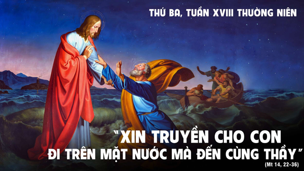 Thánh Phêrô trong khi gần chìm, ngài đã kêu lên Chúa, và khi bàn tay Chúa đưa ra, ngài đã nắm lấy. Xin Chúa ban cho mỗi người chúng ta biết can đảm đón nhận những thử thách trong cuộc sống, cũng như có can đảm nắm lấy tay Chúa để Chúa cũng kéo chúng ta lên.